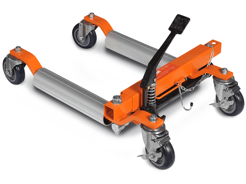 The hydraulic base for transporting cars is ideal for manoeuvring cars within a limited space. With the combination of four bases we can easily and without fear of damage move a car inside a parking lot or even an abandoned vehicle on the road. Comfortable lifting of the vehicle thanks to the foot pedal. For use indoors and on flat external surfaces. With Wheels for better maneuverability in tight spaces Robust steel construction, aluminum axle wheel