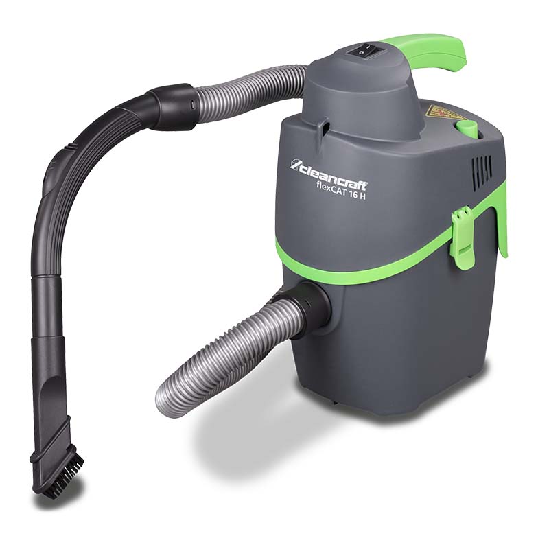 Portable vacuum cleaner flexCAT 16 H Ceancraft. Portable vacuum cleaner flexCAT 16 H with the possibility of carrying on the shoulder thanks to the carrying strap. With cassette filter with very large surface. Possibility and use as a blower. With many accessories ideal for spaces with little access. With filter clean button. Technical characteristics