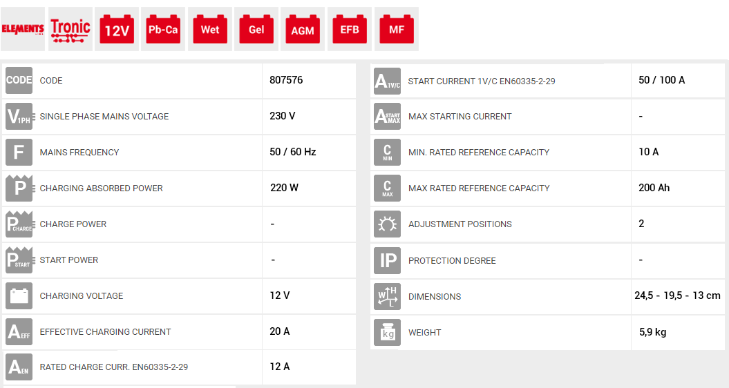 • TRONIC : Η τεχνολογία Tronic βασίζεται στην έξυπνη παρακολούθηση για τη διατήρηση της βέλτιστης φόρτισης και συντήρησης χωρίς να προκαλεί αλλοιώσεις ή τροποποιήσεις που βλάπτουν τη χημική δομή της μπαταρίας, ακόμη και σε παρατεταμένες περιόδους (π.χ. συντήρηση οχήματος σε περιόδους ακινησίας).Ο συνεχής έλεγχος της διαδικασίας φόρτισης αφενός αποτρέπει την πιθανή υπερφόρτιση και υπερθέρμανση της μπαταρίας και αφετέρου επιστρέφει την μπαταρία στην βέλτιστη κατάσταση. Το αποτέλεσμα είναι μια τέλεια φορτισμένη μπαταρία με μεγάλη διάρκεια ζωής.