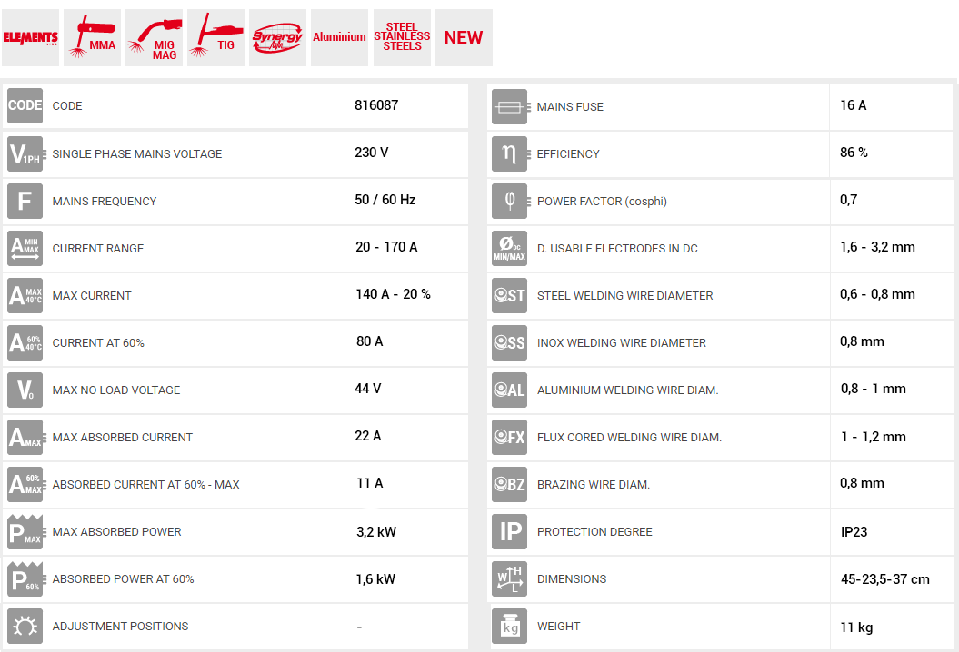 • Αλλαγή πολικότητας για συγκόλληση MIG-MAG με αέριο/BRAZING • Θερμική προστασία , προστασία από αυξομειώσεις της τάσης.• Προστασία για γεννήτριες (+/- 15%).• Κατάλληλη για συγκόλληση ΧΩΡΙΣ ΑΕΡΙΟ/FLUX.• Πλήρης με τσιμπίδα MIG-MAG, γείωση και καλώδιο.